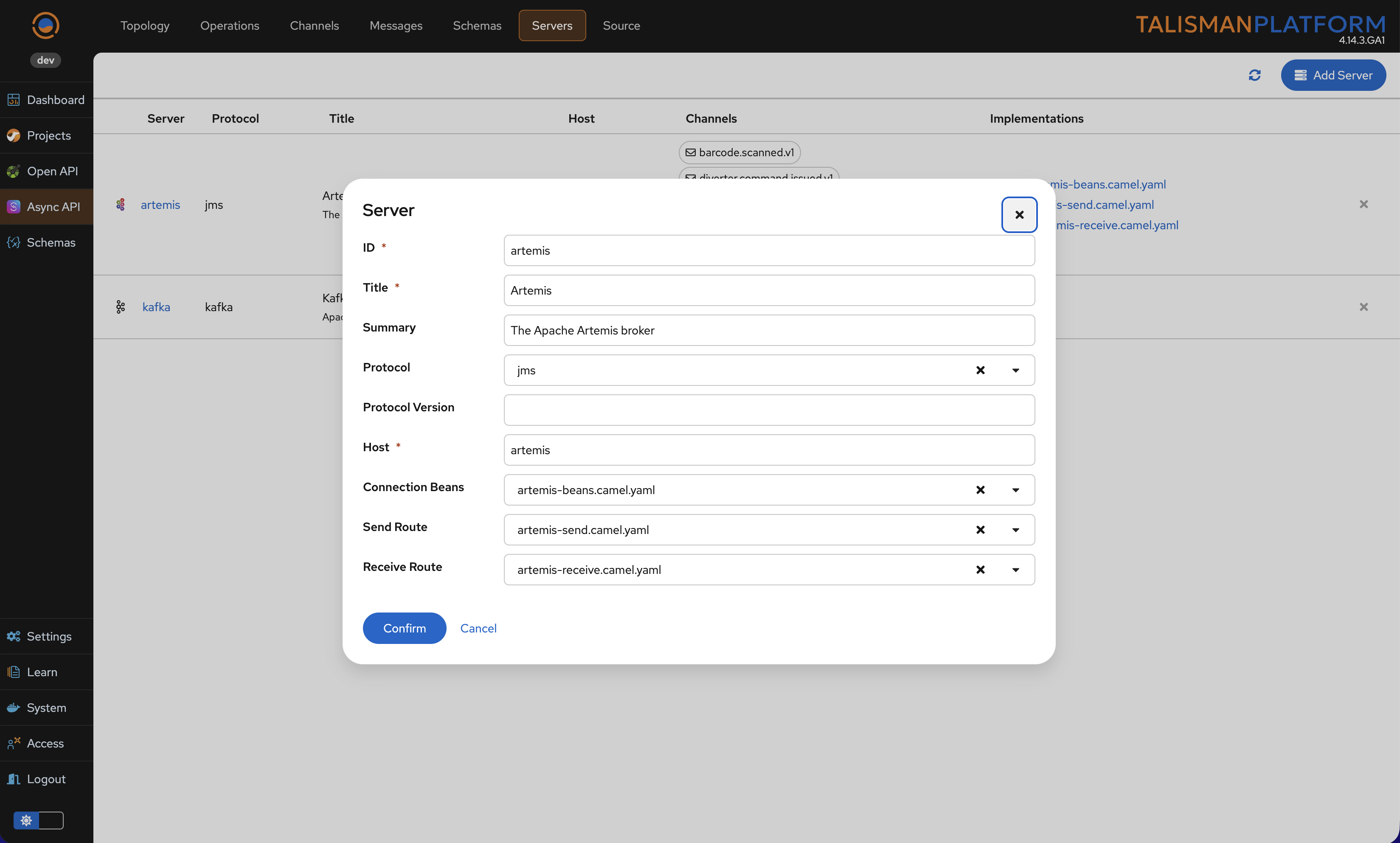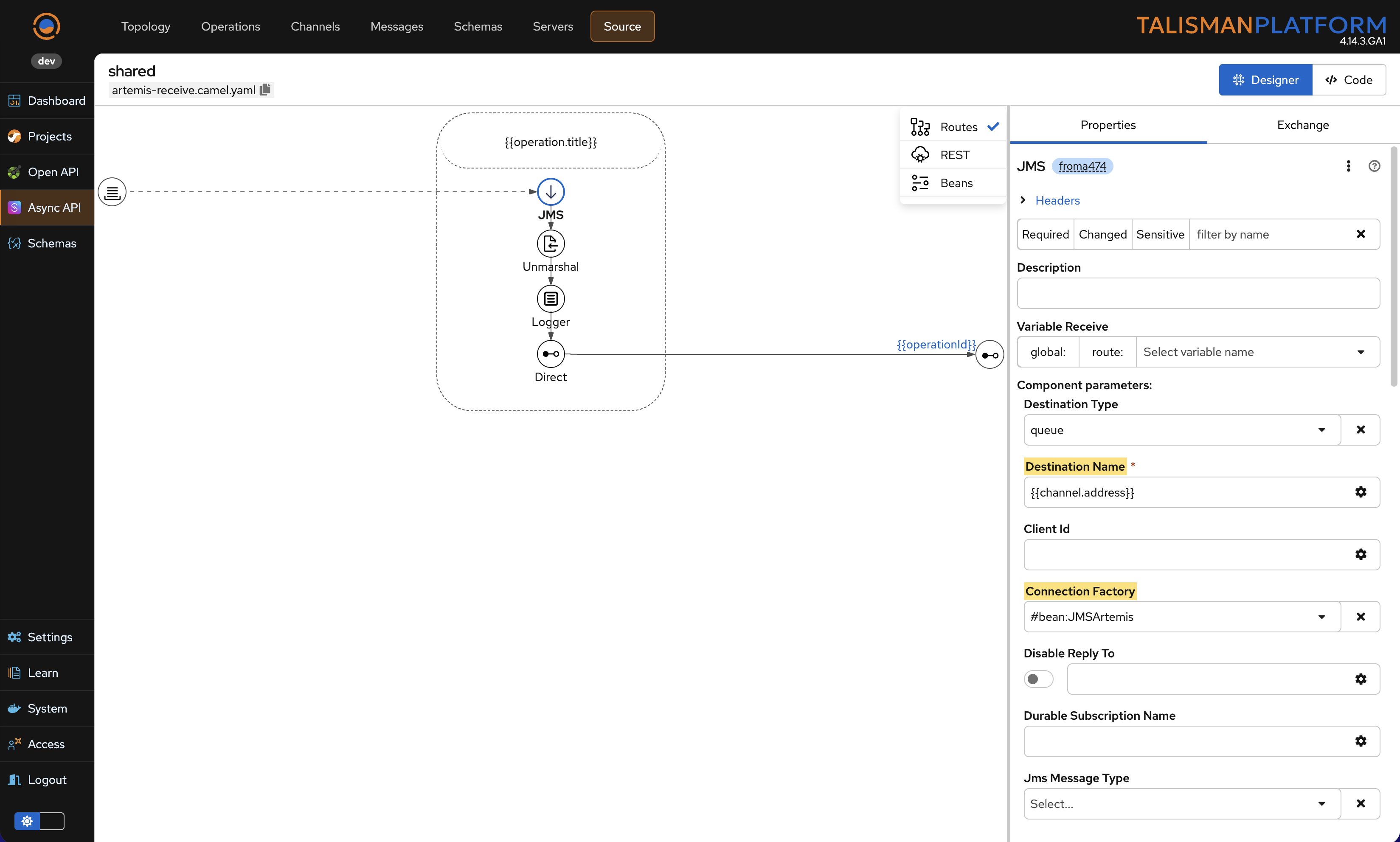 artemis-beans.camel.yaml,artemis-send.camel.yaml, andartemis-receive.camel.yamlvia the server properties.